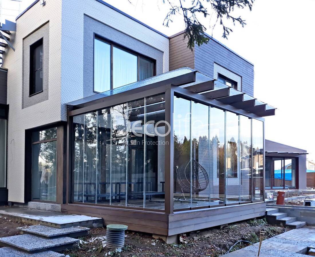 Пергола Decolife Project Light + гильотинное остекление W600 - г. Москва