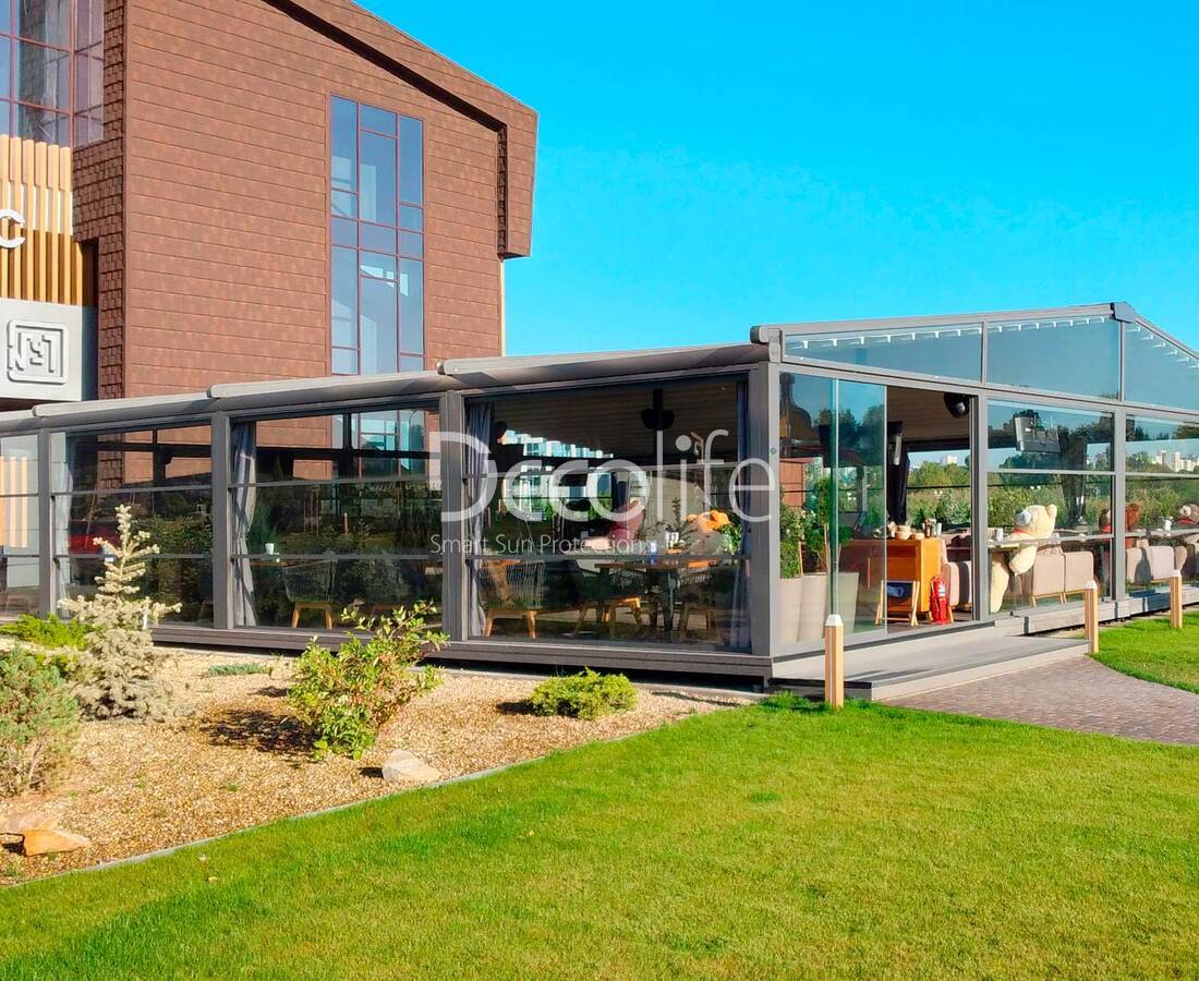 Пергола биоклиматическая Decolife В500-20П + Раздвижное остекление S100 - Московская обл., КП Парус